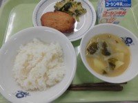 ご飯手作りさつま揚げおろし煮びたしじゃがいものみそ汁牛乳