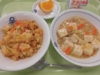 キムチチャーハン豆腐の中華煮果物(はれひめ)牛乳