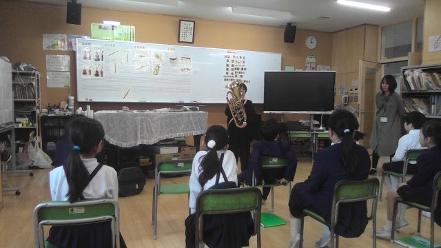 今回はオリエンテーリングとして、蔵前オーケストラで演奏する楽器の紹介がありました。映像を通して、どの楽器がどんな音なのかを聞きました。ユーフォニアムは実際に先生が演奏して音を聞かせてもらいました。