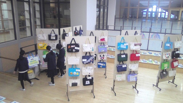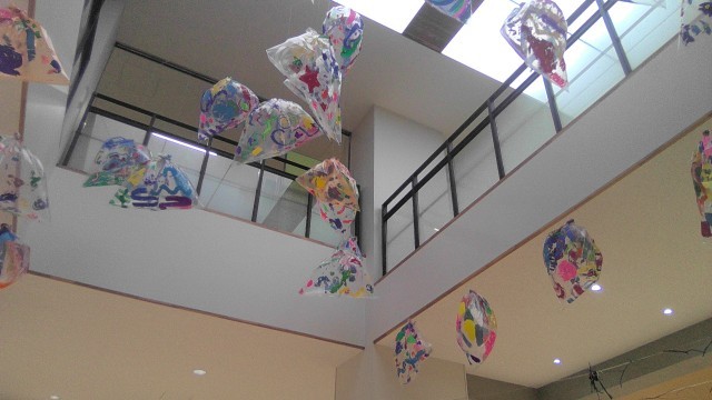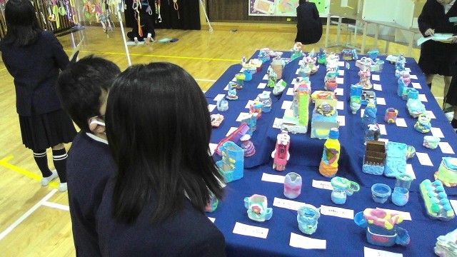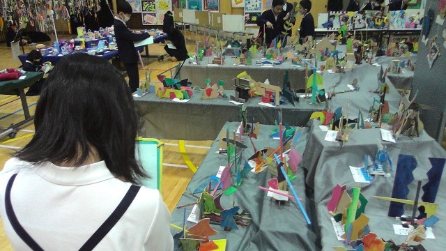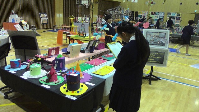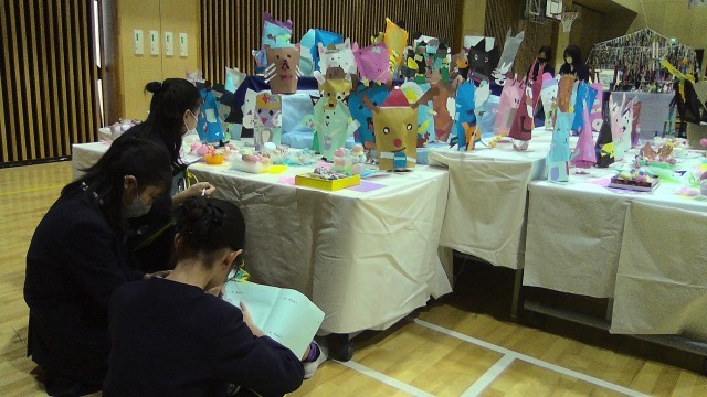 アリーナには全学年の作品が展示されています。