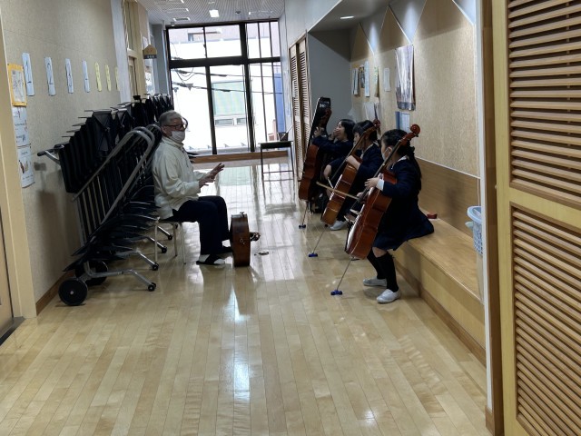 練習を見に来てくれた他の学年の先生方、オーケストラの上級生が「よく音が出ている」と褒めてくれました。