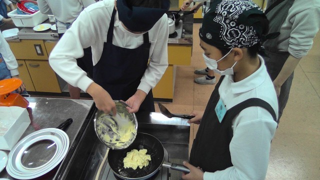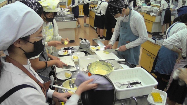 最後の調理実習はリンゴのホットケーキと紅茶でお茶の時間。