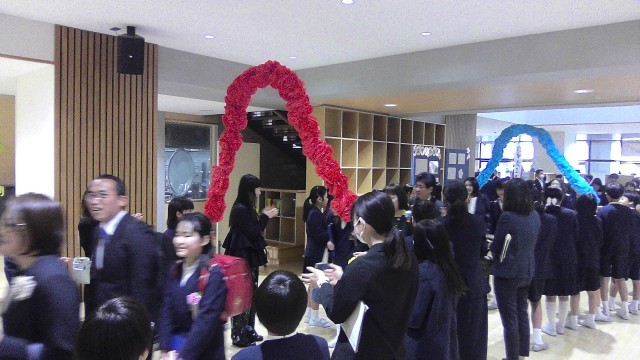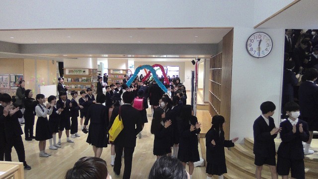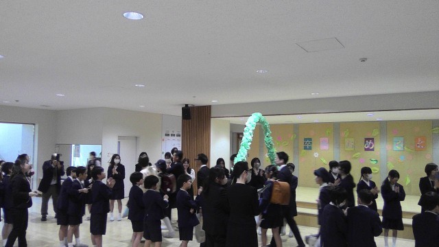 5年生、来賓の方々、教職員で卒業生と保護者の方々をお送りしました。