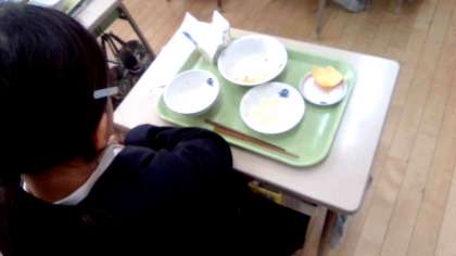 「おいしい!」と、たくさんの子がおかわりをして、食缶はすっからかんになりました。