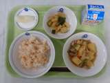 ごはん 豚肉のしょうが焼き 野菜ソテー けんちん汁 牛乳
