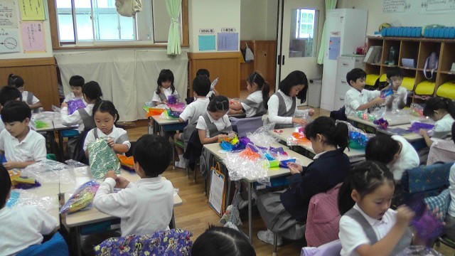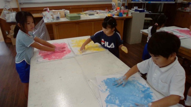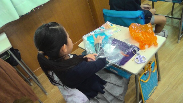 液体粘土ではとろとろの感触を楽しみながら、色セロハンでは色の重なりに興味をもちながら学習に取り組みました。