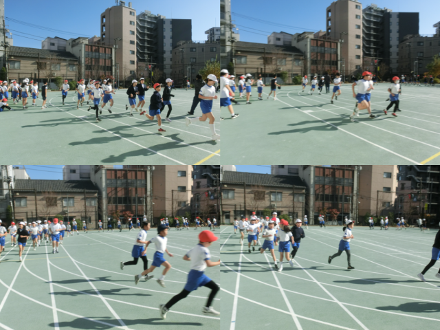 中休みには持久走の取組が始まりました。自分に合ったペースを見つけながら歩かずに走り続けます。