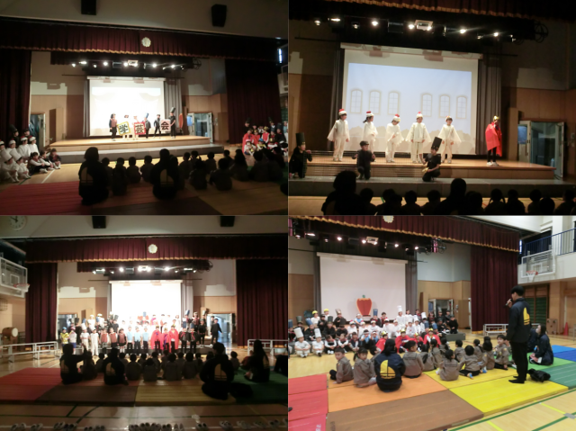 1年生は近隣の保育園の年長園児を招いて学芸会の劇を披露。「すごい」「うまい」という園児の感想と園長先生からのお言葉に笑顔でした。