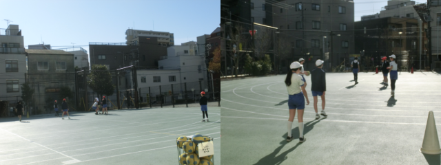 暖かな日差しの第二校庭では元気に体育の学習をしています。