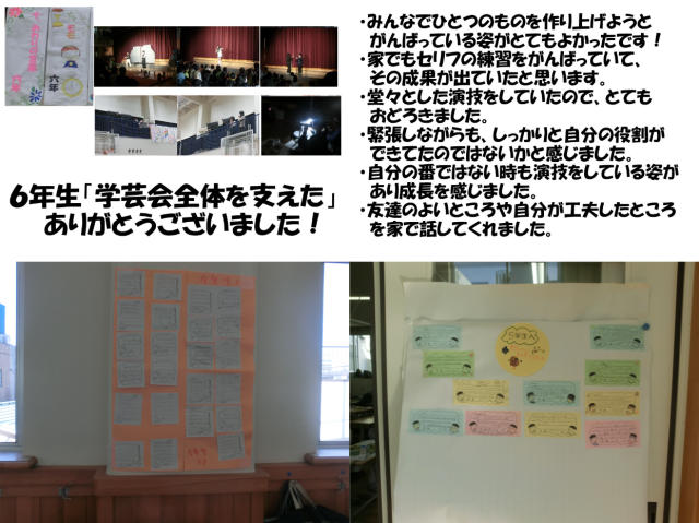 「みんなで協力して作り上げる」という経験が学年学級の成長につながりました。残りの1か月半もしっかりと生活して今年度のまとめをさせていきたいと思います。
