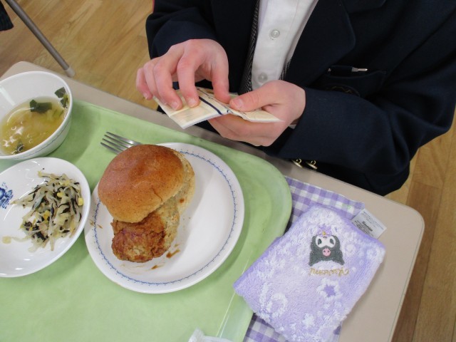 今日は6年生のリクエストメニューです。チーズバーガーは