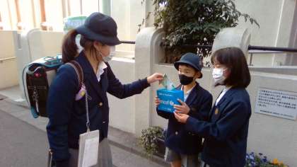 朝門の前に代表委員会の児童が立って募金を集めました。