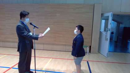 4月24日(日)に行われた「わんぱく相撲台東区大会4年生の部」で、優勝・準優勝をした児童二人が表彰されました。おめでとうございます。