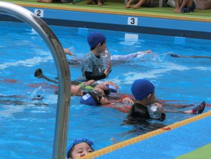 海・川遊びをしているときに、洋服を着たまま水に落ちたり、流されたりしたときの対象方法について体験を通して学ぶ「着衣泳(ちゃくいえい)」を実施しました。(中学年は雨天延期)衣服を着ていると保温性はあるものの泳ぎにくいことを体験しました。また、ペットボトルなど浮き輪代わりになるものをうまく使うことで顔を水上に出せることも体験しました。何かあったときは、「人を呼ぶこと」が最優先ですが、こういった経験がいざというときに少しでも役立ち、命を守る意識を高められると思います。