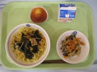 今日は七夕献立です。七夕には「そうめん」を食べることが多くなっています。これは、そうめんを七夕の伝説に出てくる織姫がつむぐ糸や、天の川に見立てているからです。給食ではそうめんをスープに入れて七夕スープ作り、ドライカレーには星型のチーズ、デザートのゼリーには星型のナタデココを入れました。今日の給食はどのメニューにも星が入っています。
