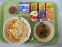 今日は夏至です。夏至は、一年の中で一番太陽が出ている時間が長い日とされています。地域によって、夏至の日に食べるとよいと言われているものがあります。大阪の辺りではタコを食べます。タコを食べるのは、夏至が田植の時期なので稲の根がタコの足のようにのび、稲が育つように願いを込めたと言われています。給食では、皆さんがすくすく育つよう願いを込めて、たこめしを作りました。