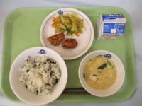本日のメニュー ごはん チキンカツ きゃべつのソテー