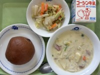 献立:牛乳、ひじきご飯、豚肉と夏野菜の煮物、セレクトゼリー(もも又はパイン)