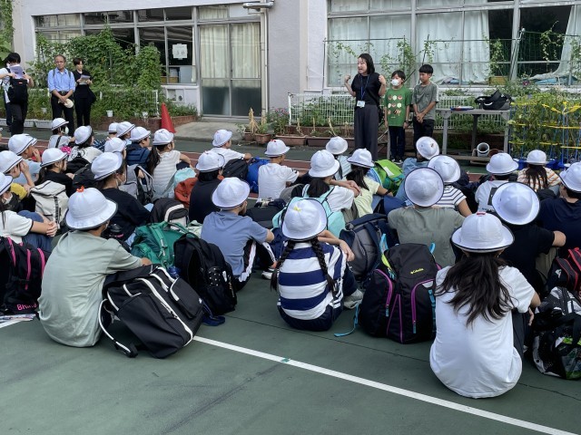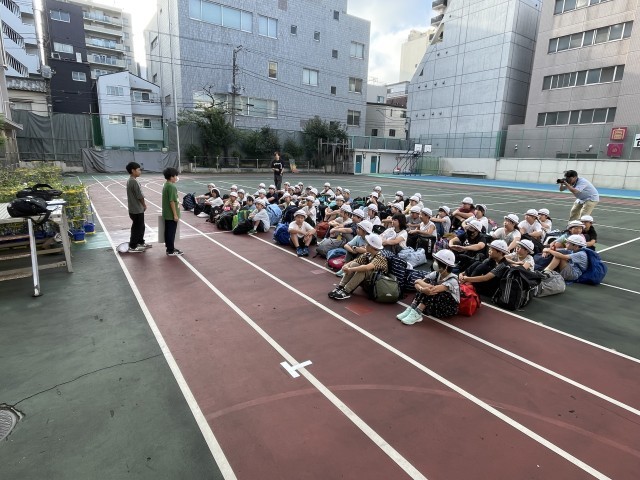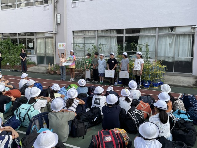 子供たちは昨日からワクワクしてなかなか眠れなかった子もいたようです。出発式では班長さんたちがめあてを発表しました。協力、自然、友達との関わり、時間を守る、という目標を確認しました。先生のお話もしっかりと聞いて、いい出発式になりました。