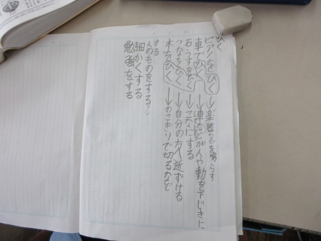 『学校を出る・単行本が出る・結果が出る…』同じ音でも意味が違う言葉がたくさんあります。今日はそれについて考える学習です。国語辞典を見ながら、自分で言葉を選んで一所懸命に調べていました。