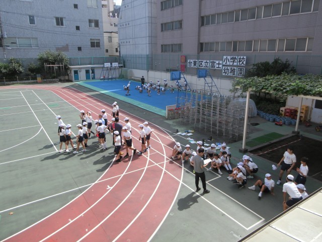 10月23日にリバーサイド陸上競技場で、台東区内の小学6年生が集まって連合運動会を行います。種目は50m走、100m走、50mハードル走、走り幅跳び、走り高跳びの5種目で、子供たちはそのどれかに参加します。