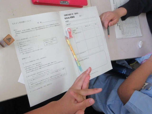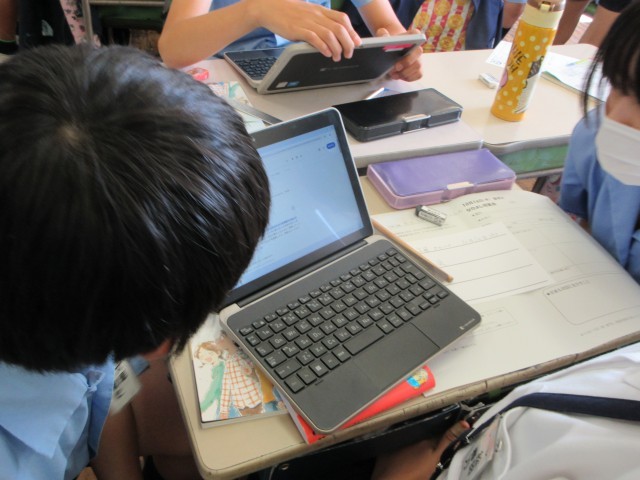 そのリーダーは6年生です。来週のなかよし班活動に向けて、ゲームの内容や進行の仕方について話し合っています。その中でも、「低学年には難しいから、こういうルールを付け加えよう。」など相手を意識した6年生らしい意見もたくさん聞こえてきます。タブレットでみんなで楽しめるゲームについて検索しているグループもありました。下級生が楽しむ姿を思い浮かべて、真剣に、でもとても楽しそうに話し合いを進めており、6年生のやさしさとたのもしさを感じました。