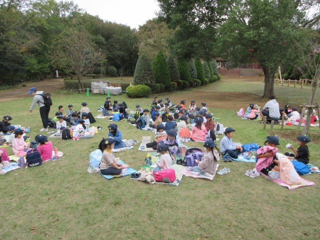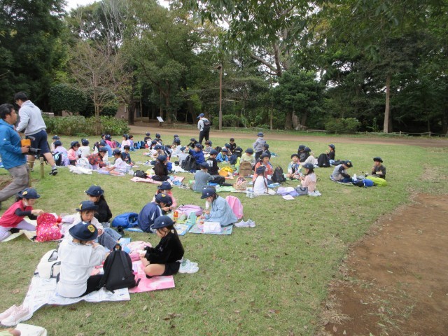 みんなで集合してお弁当を食べました。これも小学校に入ってから初めての経験。みんなと話したり、おうちの人が作ってくれたお弁当自慢をしたりしながら楽しく食べていました。