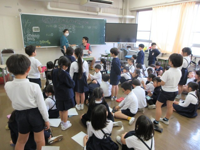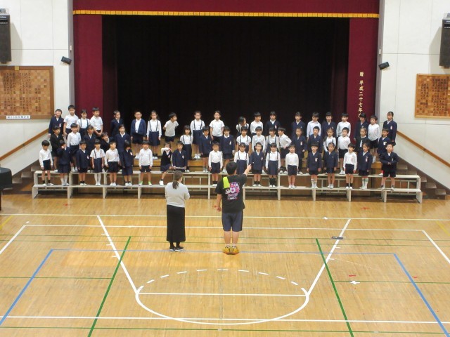 体育館での練習では自分の立ち位置を確認しました。1年生の子供たちの気持ちも高まってきました。