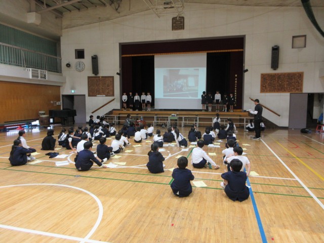 2年生は創立125周年記念集会に向けての練習が始まりました。