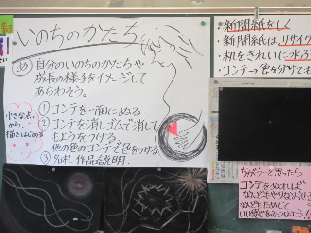 みんな真剣で、ちょっとしんみりとした雰囲気でした。図工の授業でも、人権教育を進めています。命や心について考え、思いを深めています。