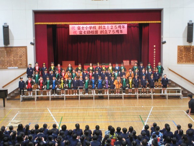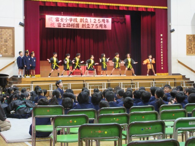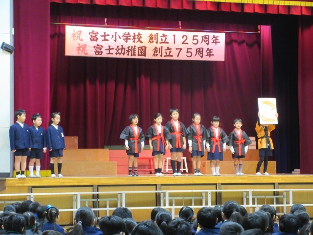1年生は、『われら、ふじっ子にんじゃ!』というタイトルで、入学してから8ヶ月、みんなに支えられながらもできるようになったことを忍者になりきって発表します。