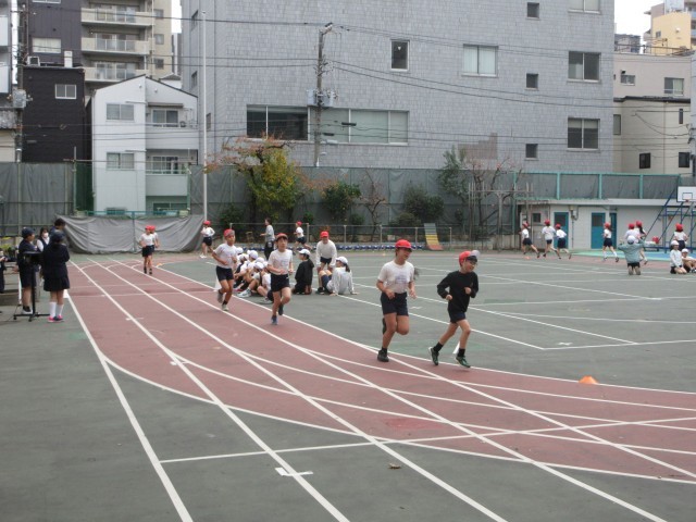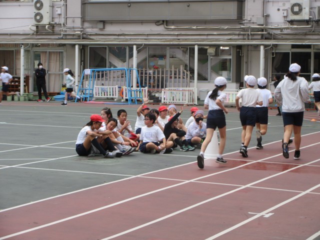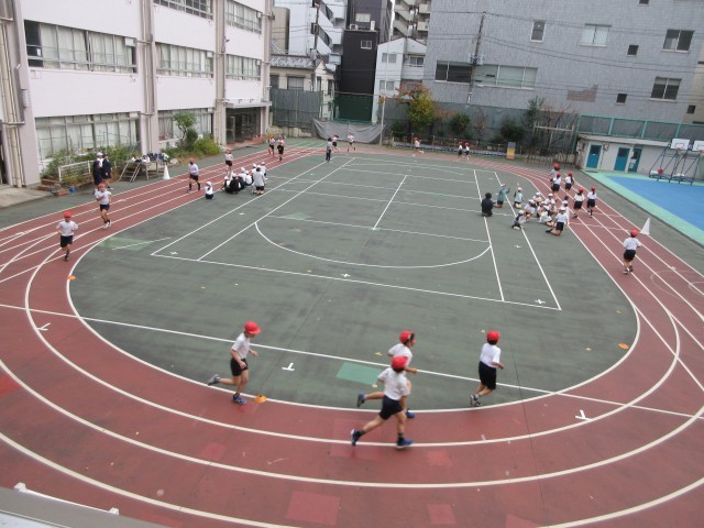 来週に迫った持久走大会に向けての練習が本格的になってきました。練習を重ねるにつれて、速く・楽に走るペースを見付けてきました。ペアの子からは『あと○周! がんばれ!』の声が響いています。持久走が苦手な子もいるのですが、みんな一所懸命に走っています。