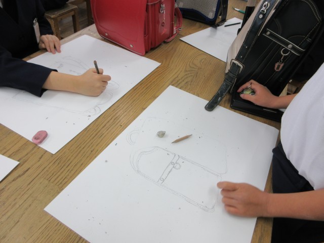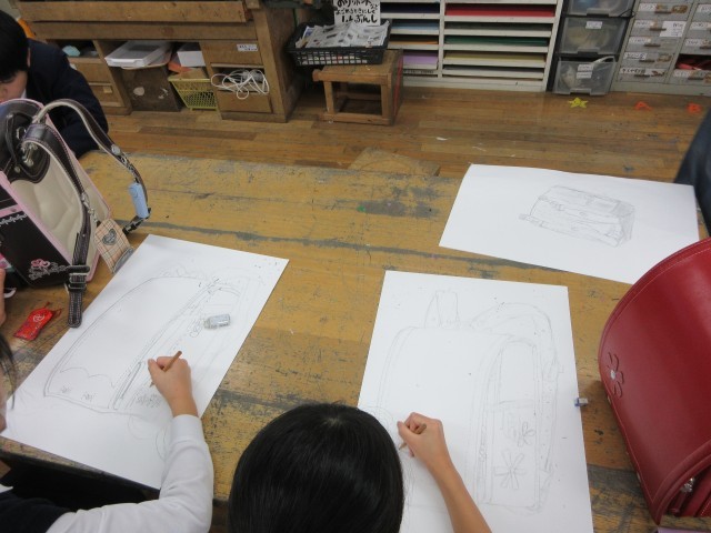 おうちの人やおじいさんおばあさんに買ってもらったときのこと、入学したころのこと、ランドセルの傷などいろいろンことを思い出しながら描いているようで、図工室にはいつもとは違ったしんみりとした雰囲気がありました。