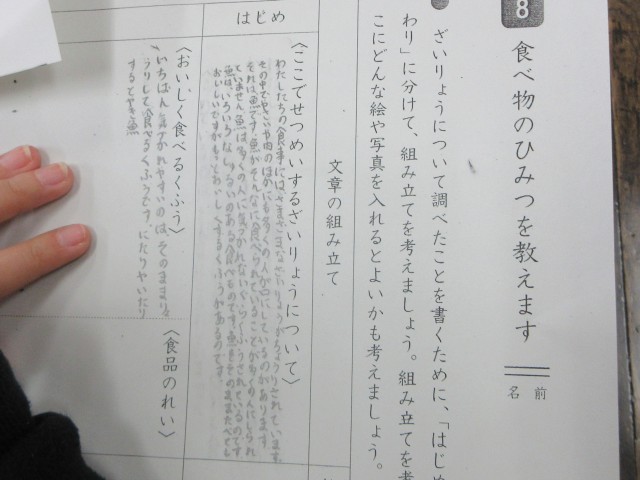 国語では説明文で大豆がしょうゆやみそなどに加工されるように、姿を変える食品の読み取りをしました。