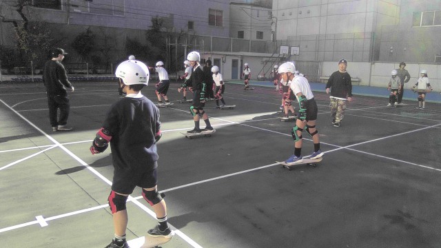 いよいよ、ボードに乗ります。インストラクターのいうとおりにスーッとけってその足を乗せることでみんなすぐに乗れるようになりました。何回か繰り返すうちに上手に乗れるようになってきました。防具をつけるのに時間がかかったので、スケートボードの練習は実質25分くらいでしたが、インストラクターのいうとおりに練習することで、あっという間に乗れるようになりました。