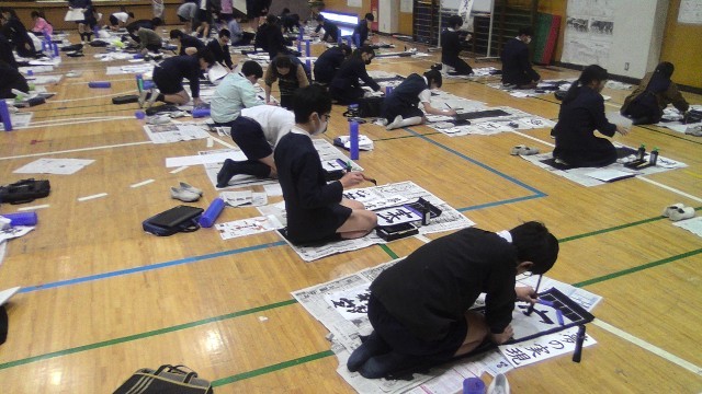 今日は体育館で書初めの練習です。書く文字は『夢の実現』。春には中学生になる6年生が自分の夢を実現させるぞという思いを込めて、書初めをしました。習字に集中する姿もかっこいいです。いろいろな面で力を発揮する6年生。今年、登校するのもあと8日ですが、いい締めくくりをしてくれそうです。