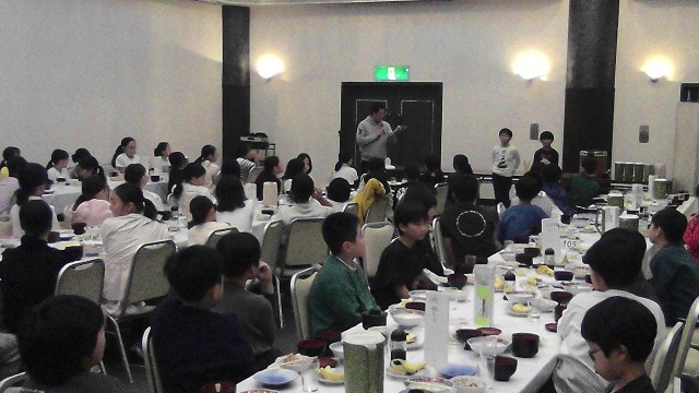 夕食が終わって、その場で担任の先生からこれからやることについてお話がありました。荷物はどのように片付けるのか、明日の朝の着替えを枕元に準備しておくこと、各係がやらなければいけないこと・・・。