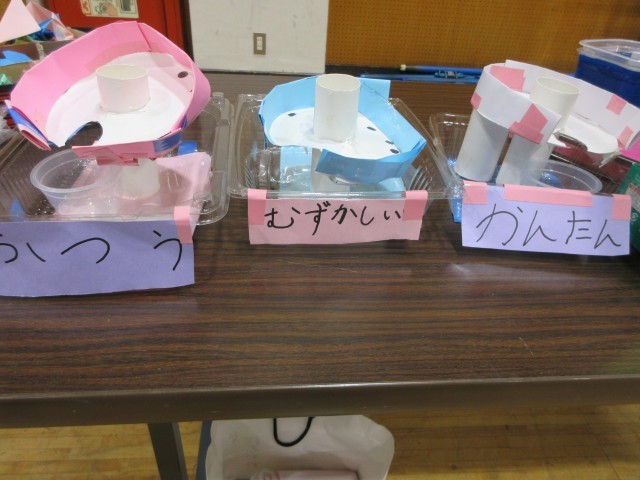 1回、1回、よかったところやもっとよくするための工夫、友達のグループのよいところなどを振り返り、グングンバージョンアップしてきました。園児に合わせてレベルを変えたり、お土産を作ったり、もう立派なプレイパークです。一番下の写真ですが、あるグループが、きちんと並んで待てるようにとケンステップを置くと、他のグループの真似して、みんなで気持ちよく遊べるようにしていました。回を追うごとに立派になるおもちゃワールドとともに、2年生の子供たちも立派に成長しています。