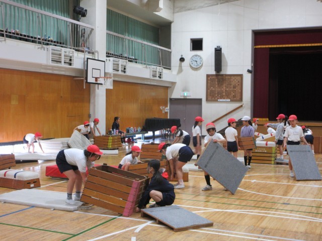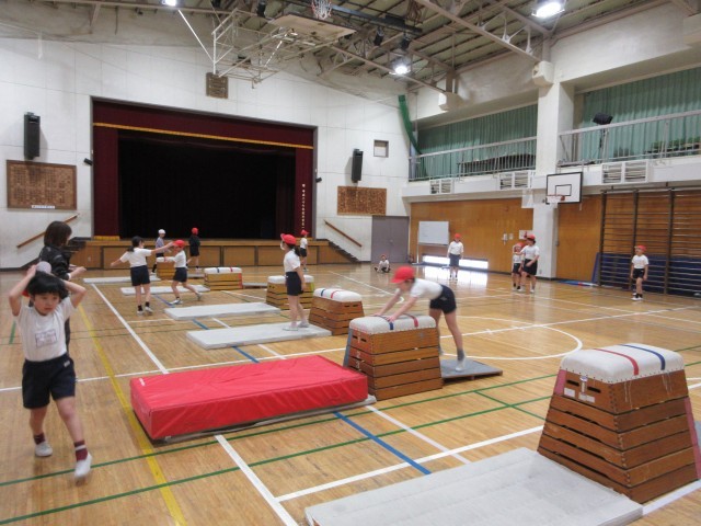 挑戦する跳び方と、練習をする場を自分で選んで学習を進めていきます。この日、3分の1くらいの子が新しい跳び方を跳べるようになりました。もう少しでできそうな子も満足そうな笑顔でした。片付けも協力してしっかりやりました。