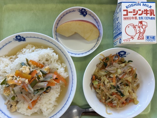 献立:牛乳、クッパ、チャプチェ、りんご