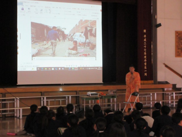 後半は打って変わって世界の課題です。フジモン先生が実際に行った南アフリカのスラム、とても貧しい人が働いていて戦争の引き金になっているダイアモンドの鉱山、、、様々なところを紹介しながら、戦争・貧困・環境・格差、地球の抱える大きな4つの問題について考えさせてくださいました。
