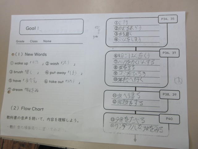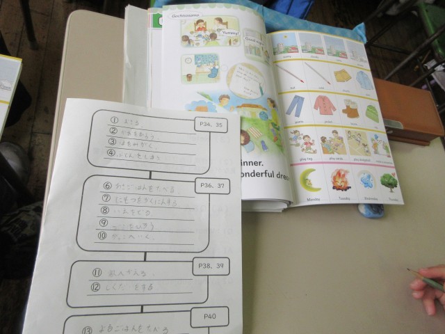 今日はそれを駆使して、教科書の簡単な文章を日本語に直しました。初めて出てきた言葉の意味は先生が教えますが、子供たちはわかる言葉や今まで習った文から推理して和訳をしていきます。どの子も大体の意味はつかめていました。