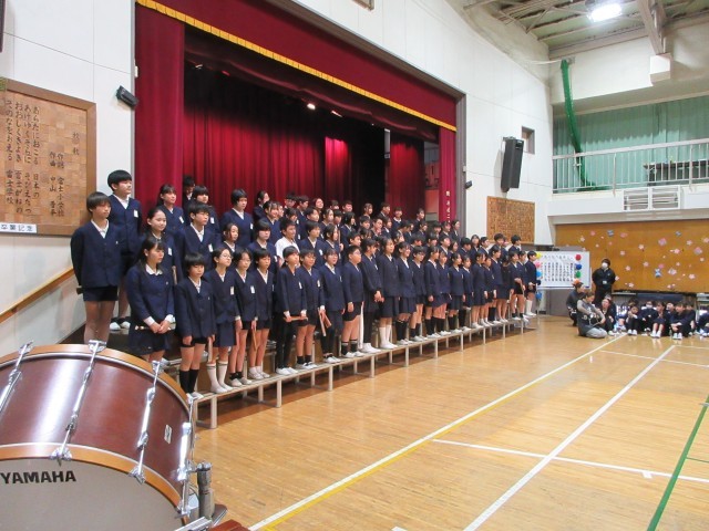 かわいい1年生に手を引かれて、6年生が入場してきました。ひな壇に立つ姿はとても立派でかっこいいです。6年間富士小学校で学んできて、そしてこの1年間みんなをを引っ張ってきて、とっても大きく頼もしく成長しました。