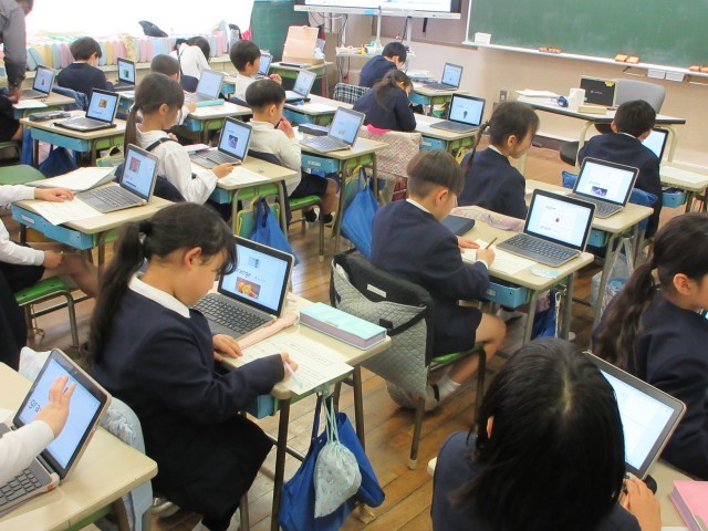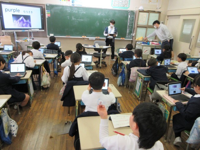 外国語(英語)の学習は3年生から始まりますが、本校では1,2年生も年間10時間の英語の活動をしています。