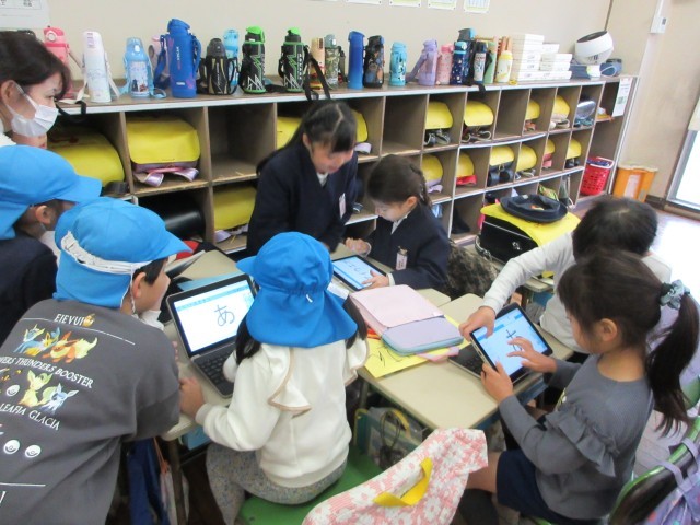 1年生は相手の様子を見ながら優しく声をかけていました。園児さんたちが喜んでいる姿を見て、1年生も喜んでいました。とてもすてきな体験ができました。