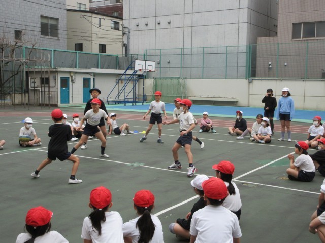 動きが上手なグループをみんなで見て、ボールをもらったらすぐにうごくというポイントを指導されると、どのグループも動きが見違えるように変わりました。たった1時間でとても上達しました。