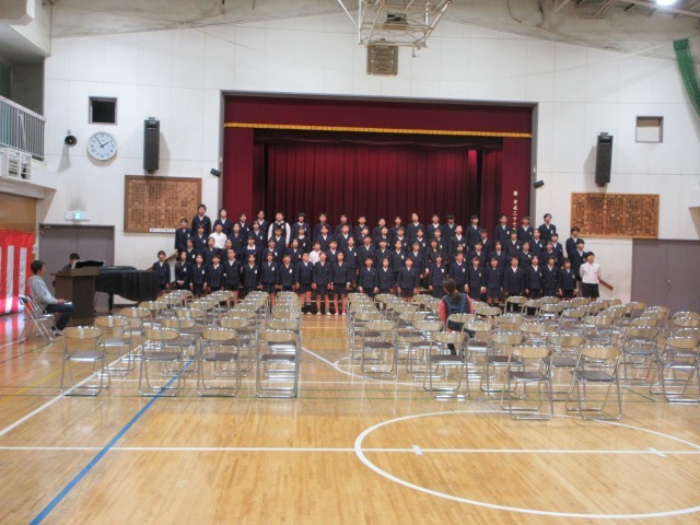 練習の回を重ねるごとに気持ちが入ってきているのが伝わってきます。式での礼儀作法、歌、練習に真剣に取り組んでいます。