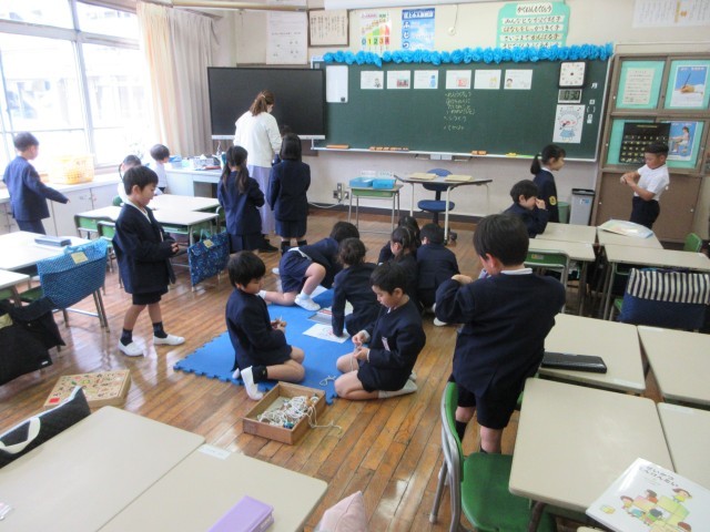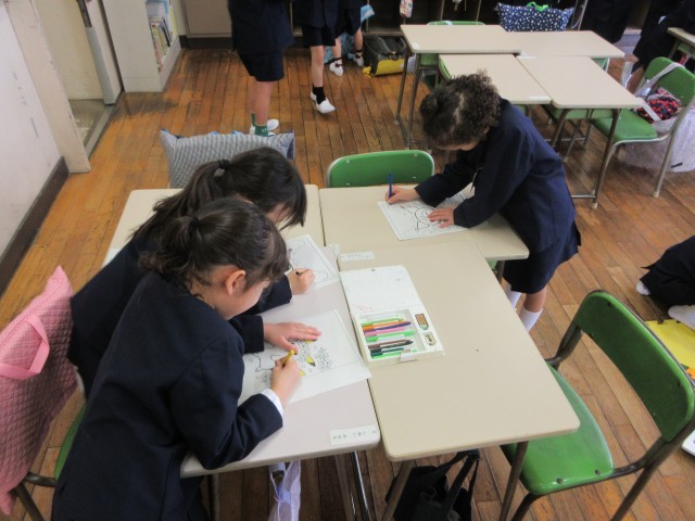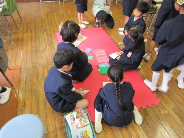 朝の準備をした子は、思い思いの遊びを楽しんでいます。真ん中にしいたウレタンマットの上で折り紙をしたり、絵本を読んだり、先生が用意した塗り絵をしたり、早速楽しそうに遊んでいます。遊んでいるうちに自然と新しい友達とも会話が生まれ、仲良くなっています。