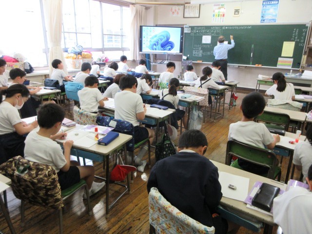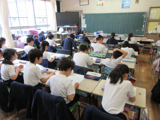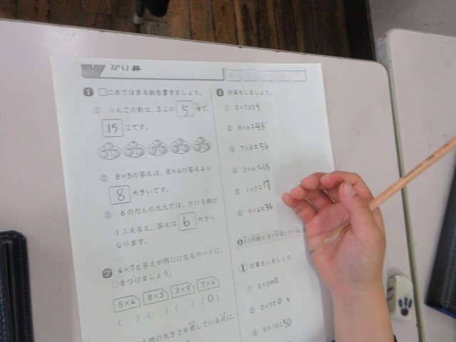 あるクラスではかけ算の復習プリントにみんな真剣に取り組んでいました。