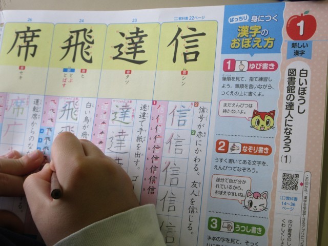 国語の教科書をよんだり、配られた新しい漢字ドリルで新出漢字を練習しました。みんな一所懸命に取り組んでいます。4年生になってたのもしく成長した感じです
